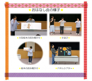 幼児から小学生(低学年)を対象に絵本の読み聞かせや紙芝居、手遊びなどを行います!